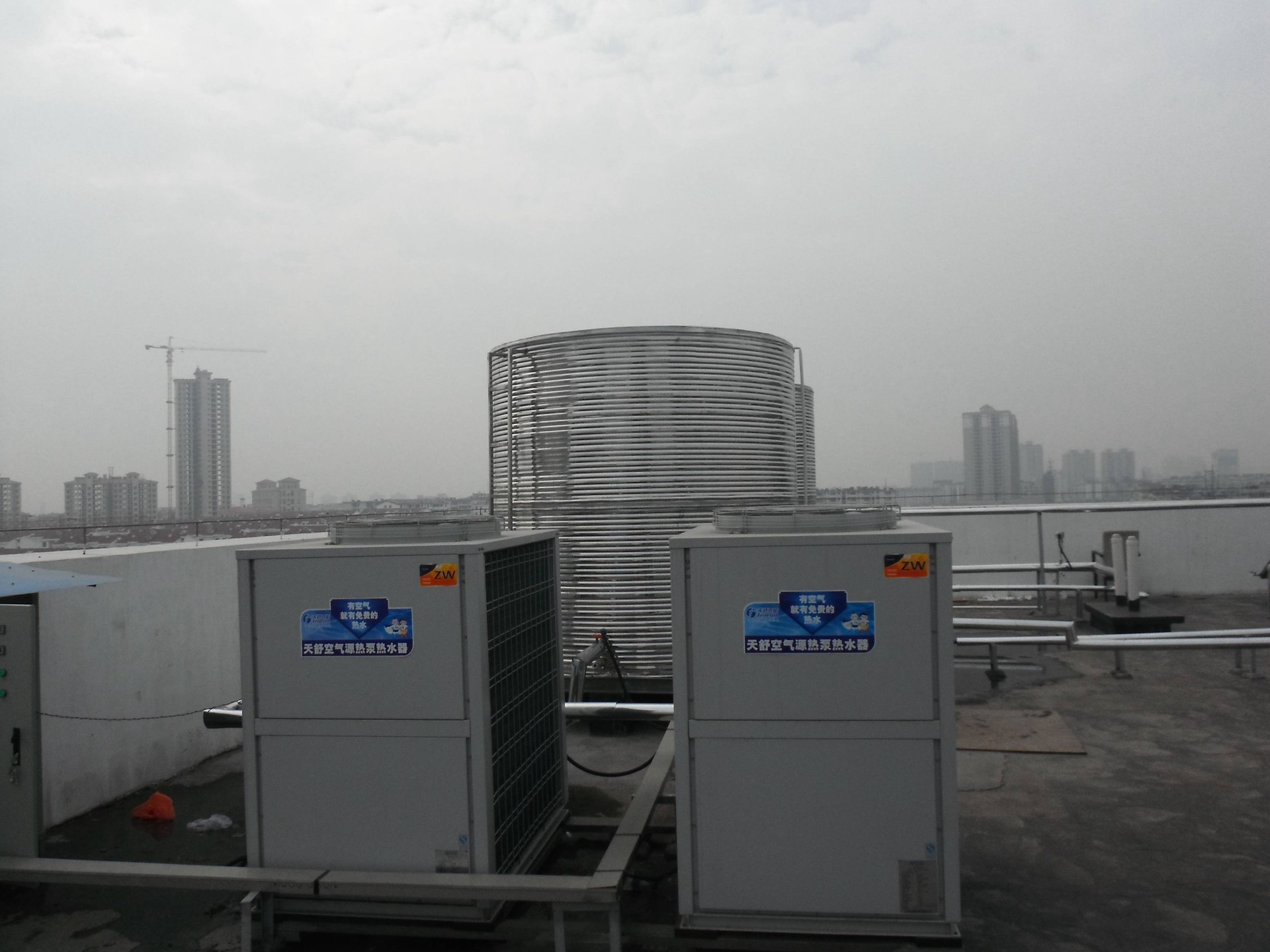 江西省宜春市永生快捷酒店共135間客房,每天需熱水量約20噸左右,使用本公司DKFXRS-33II空氣源熱泵機(jī)組2臺(tái)。2012年11月份完成安裝并開始使用,在今年1月份南方較低的環(huán)境溫度下(零下3-4度)工作運(yùn)行正常,化霜及時(shí),很好地達(dá)到了甲方的使用要求,得到了甲方的稱贊。