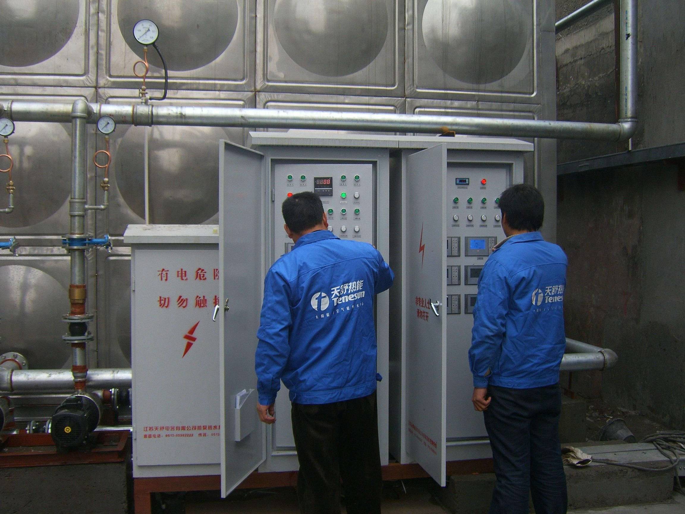 上港集團(tuán)軍工路分公司原先采用煤鍋爐作為淋浴熱水的熱源,現(xiàn)改用天舒空氣源熱泵系統(tǒng)24匹共12臺(tái),每天供應(yīng)200噸55℃的生活熱水,滿足員工熱水需求。工程所在地區(qū)有低谷用電的用電政策,系統(tǒng)在初期設(shè)計(jì)時(shí)考慮到機(jī)組集中運(yùn)行時(shí)間在全年絕大部分時(shí)間內(nèi)放在谷電階段。機(jī)組的使用效果很好,通過(guò)檢測(cè)平均全年的熱水加熱成本為4.8元/噸水。每年為港務(wù)公司節(jié)約95萬(wàn)元運(yùn)行費(fèi)用。
