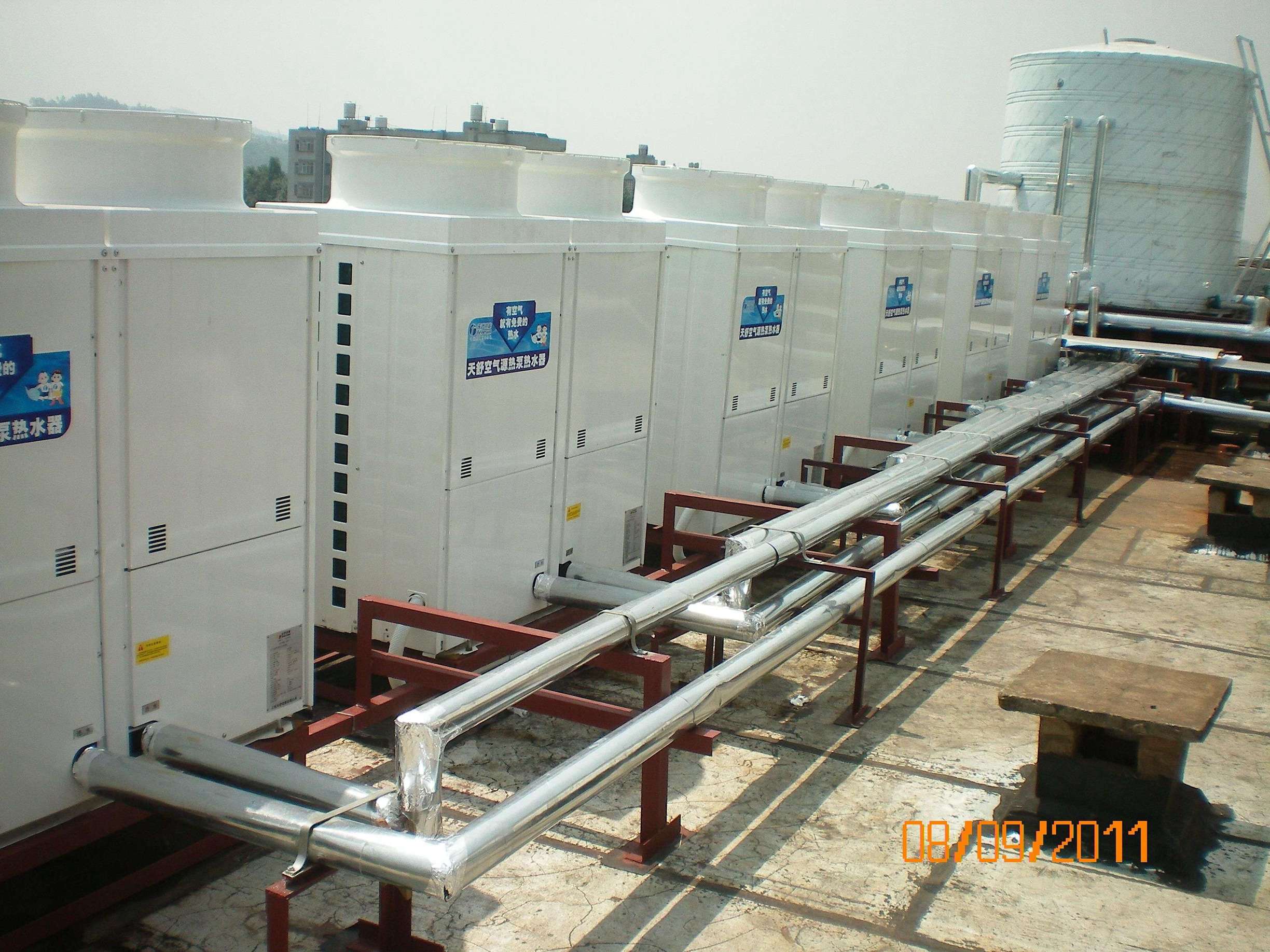 昆明世博花園酒店隸屬昆明市商務(wù)局,位于昆明市的世界園藝博覽園附近。本次項(xiàng)目包括186間客房(一號(hào)院)包括游泳館淋浴、網(wǎng)球館淋浴、員工洗浴及部分桑拿用熱水,每天需熱水50噸,選用了6臺(tái)天舒熱泵機(jī)組。經(jīng)系統(tǒng)運(yùn)行每天的耗電量在500度左右,運(yùn)行費(fèi)用是改造前的1/3。