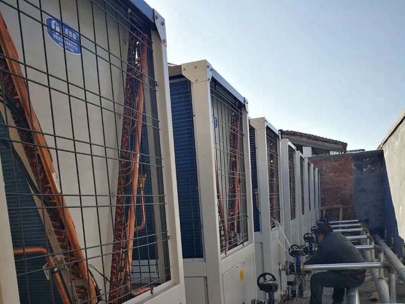 項目位于山西省晉城市,采暖面積6000平方米,末端采用鑄鐵暖氣片。使用了8臺天舒超低溫24P匹組。經(jīng)過了2017年-18℃的極寒天氣的考驗,運行穩(wěn)定。