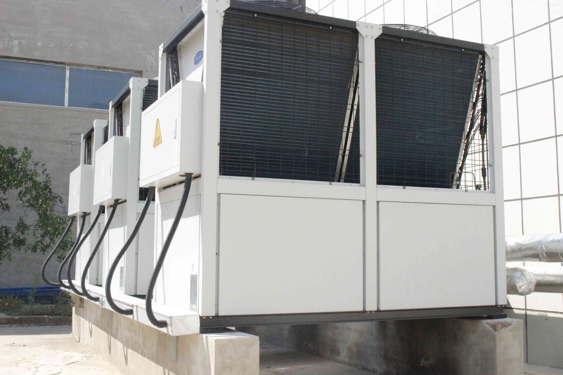 本工程為鞍山廠房末端風(fēng)機(jī)盤管采暖制冷項(xiàng)目,擬采用超低溫采暖制冷空氣源熱泵機(jī)組作為該建筑的熱源。本項(xiàng)目為廠房和辦公樓采暖,廠房面積1800㎡和900㎡,層高分別為6米和8米,辦公樓面積1400㎡。要求冬季室內(nèi)溫度18℃以上,夏季室內(nèi)溫度23-26℃?,F(xiàn)針對本項(xiàng)目,采用“天舒”超低溫采暖制冷空氣源熱泵機(jī)組滿足廠房采暖制冷需求。