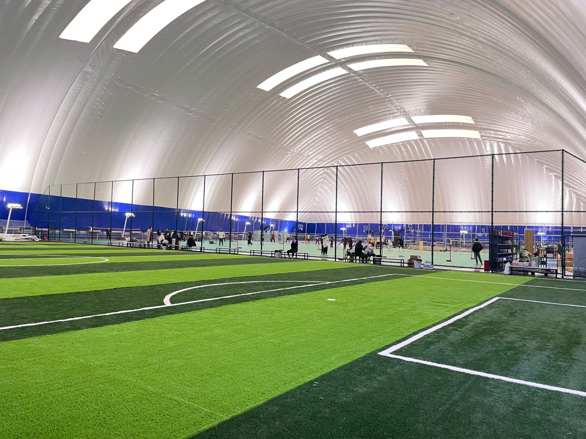 天舒為大東氣膜體育館提供了7臺60HP空氣源熱泵機組,在寒冷的冬季機組也照常平穩(wěn)運行,整套系統(tǒng)設(shè)備節(jié)能環(huán)保,智能運行。建設(shè)以來,系統(tǒng)安全穩(wěn)定,場館舒適健康。新風(fēng)系統(tǒng)保證館內(nèi)的空氣始終流通,毫無悶熱感,滿足沈陽運動愛好者對體育場館的所有要求。無論天氣如何變化,大東氣膜體育館永遠(yuǎn)是讓人舒服的運動環(huán)境。
