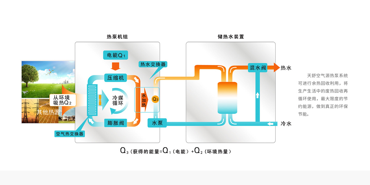 洗浴后的廢水被收集起來(lái),回收其中的廢熱,廢水本身降至低熱溫度下被排出,收集的熱量通過(guò)熱泵再進(jìn)行循環(huán)進(jìn)行熱水制造。