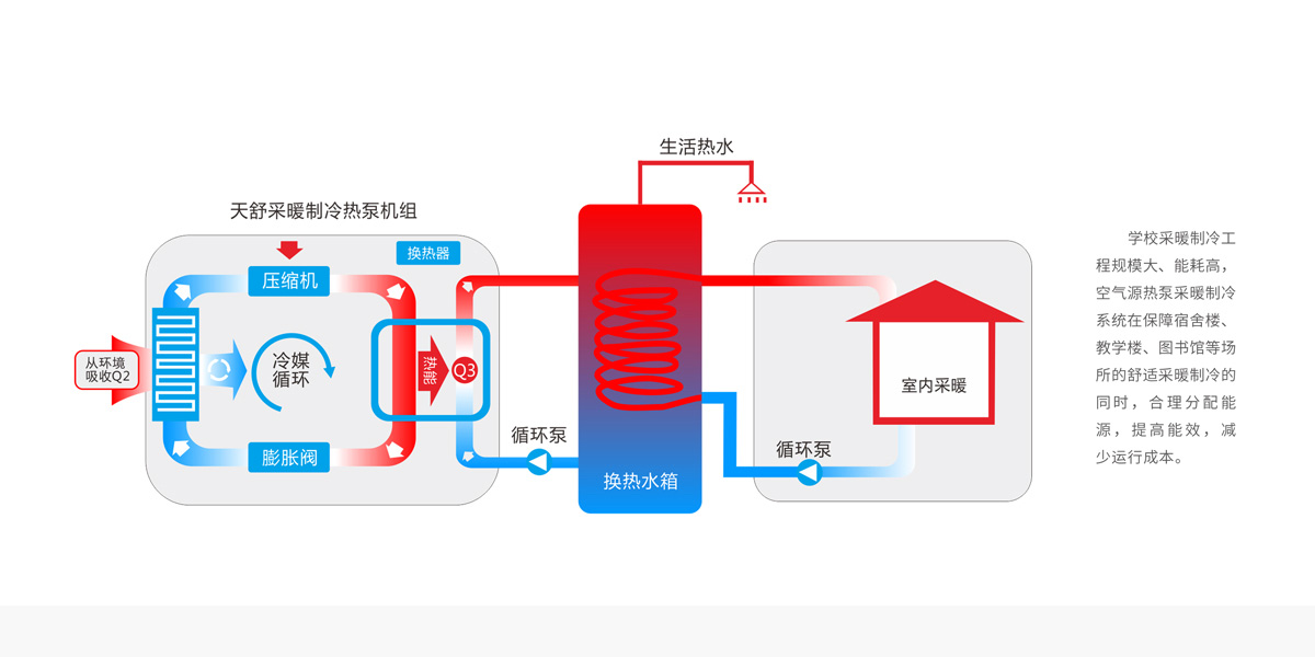 根據(jù)教學(xué)樓、宿舍、圖書館等設(shè)施的采暖制冷時間,制定方案,合理選型,減少成本。